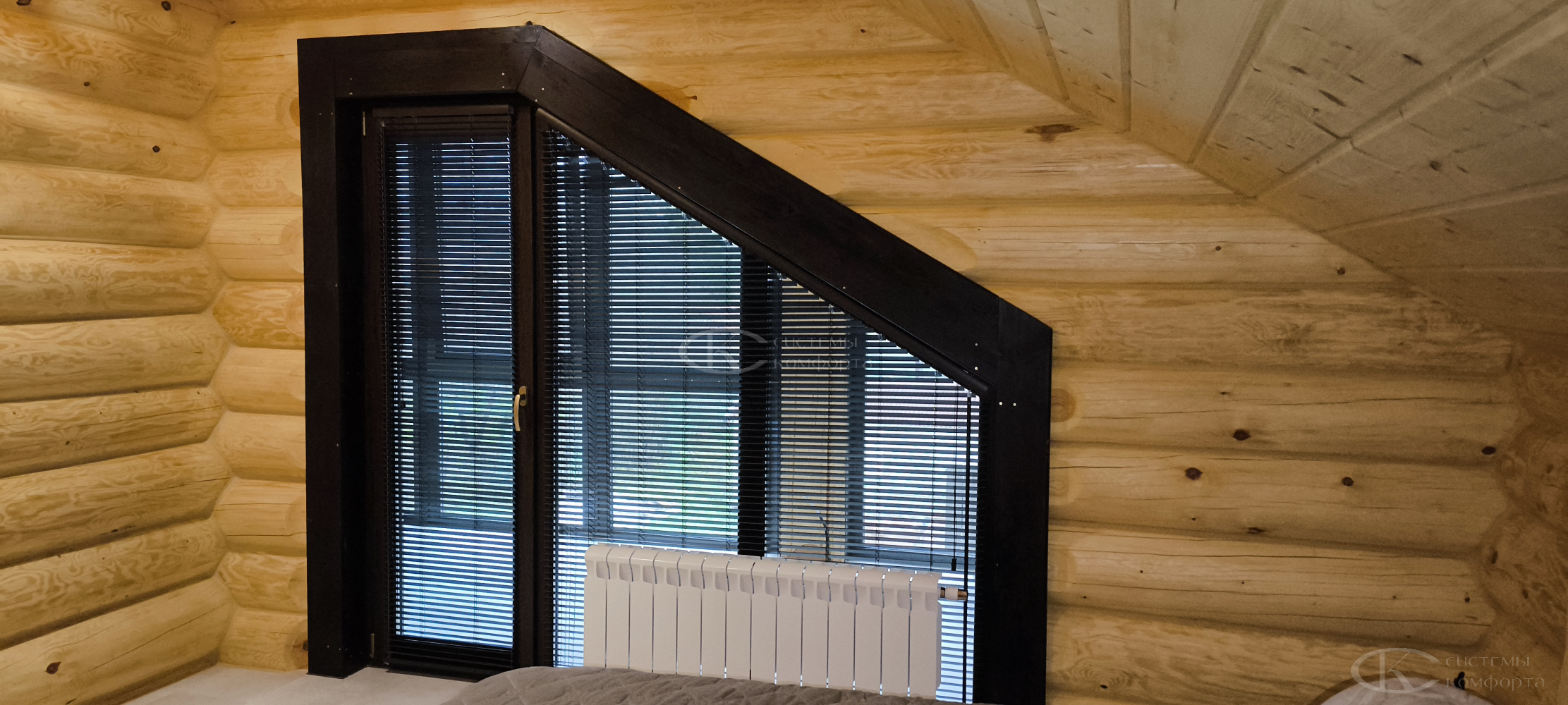 Жалюзи можно собрать полностью или оставить опущенными, но повернуть планки параллельно подоконнику — так свет будет беспрепятственно проникать в помещение.